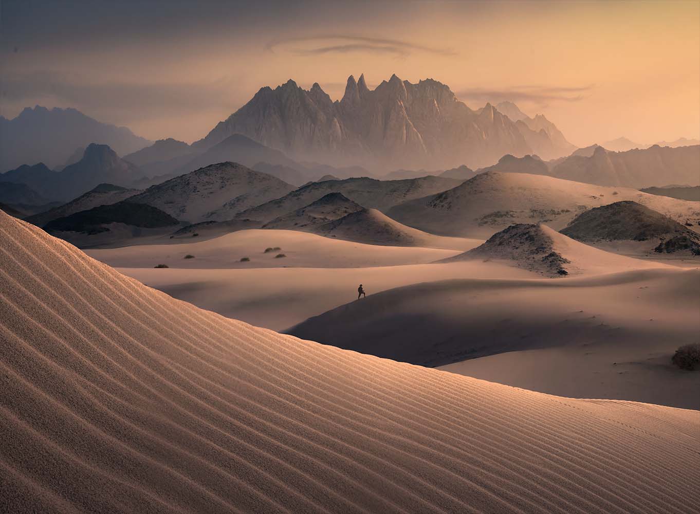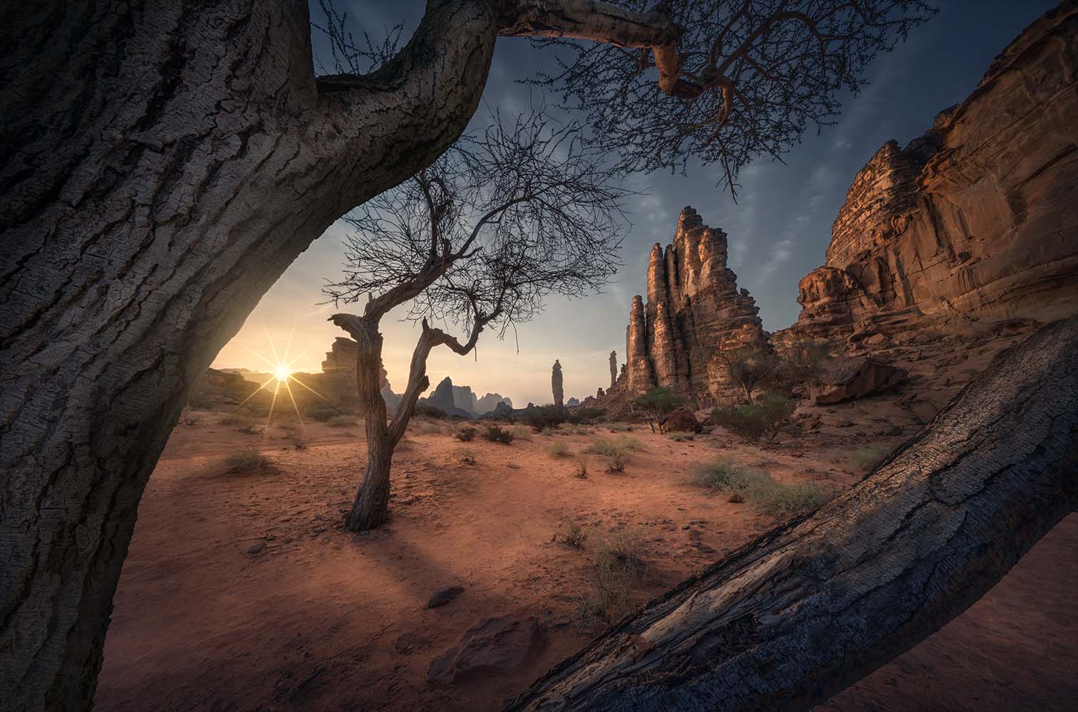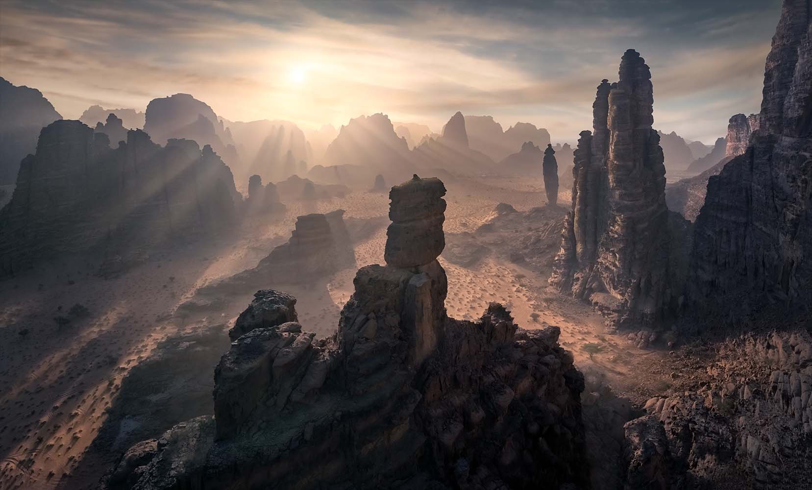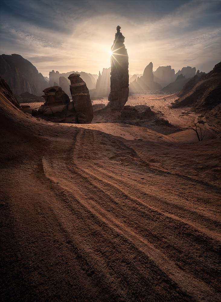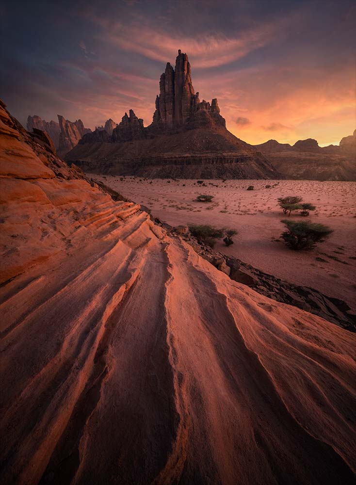 We will meet at Tabuk Regional Airport no later than 17:00 a clock. After greetings, we’ll head to our hotel in Duba, where you can relax after your journey. Dinner will be together, followed by preparation for an EPIC sunrise shoot. Our first location, the dunes, offers a truly special view, with impressive layers of sharp mountains contrasting with the soft curves of the sand. This creates a composition unlike anything you've seen before.