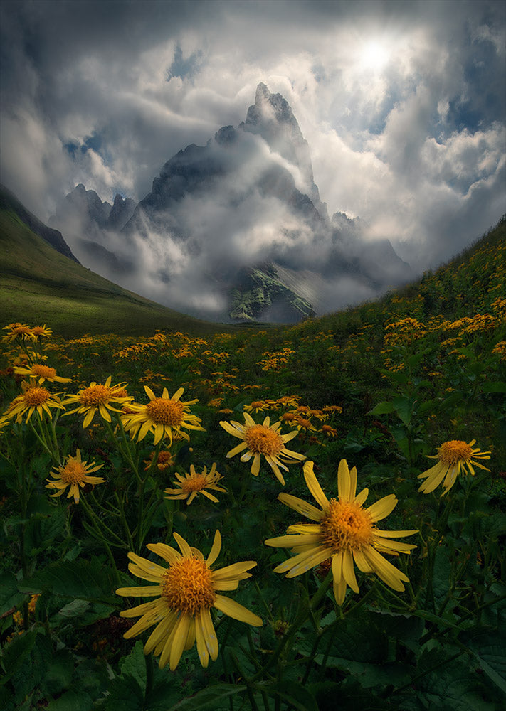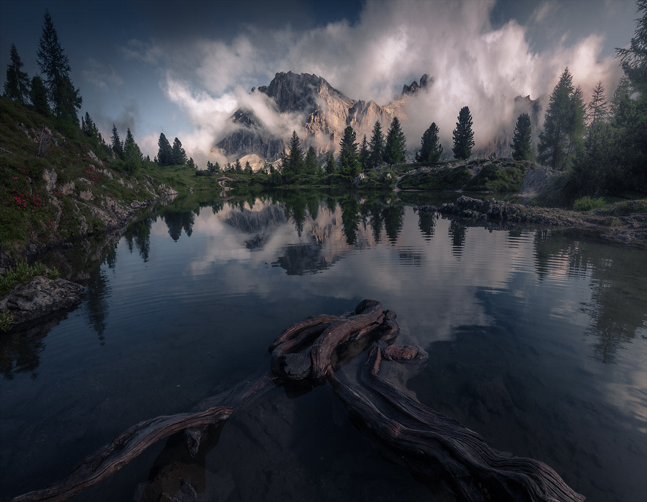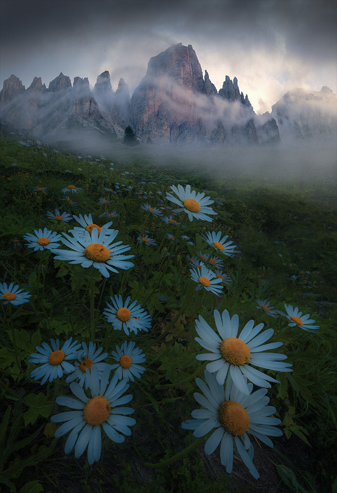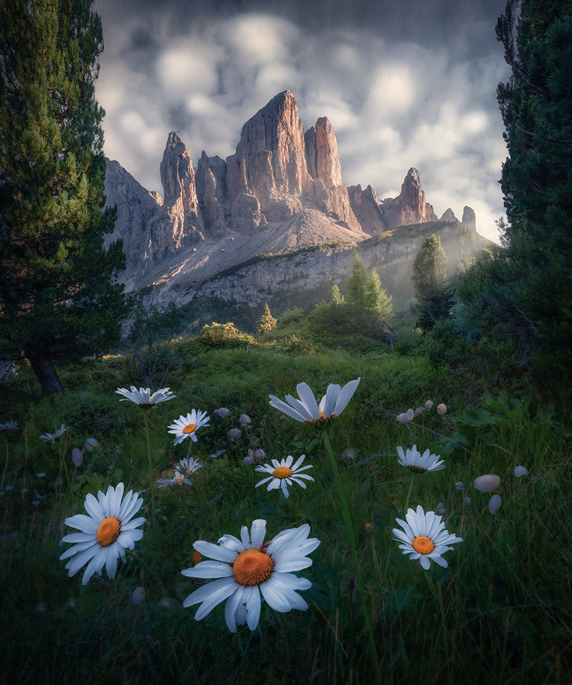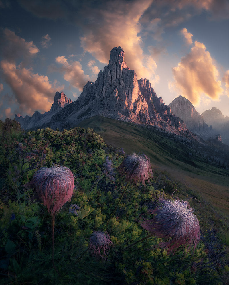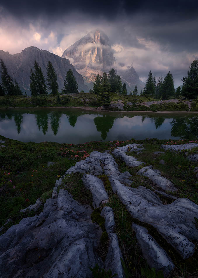 spots: Passo Giau! There are different compositions possible. There is a lake nearby and there are also flowers not far underneath the mountain. This shot requires a focus stack of 3 photos or more. This location doesn’t require any hiking, though there is plenty to explore