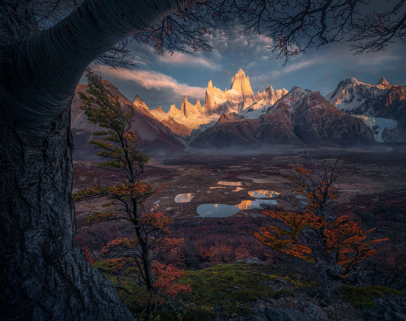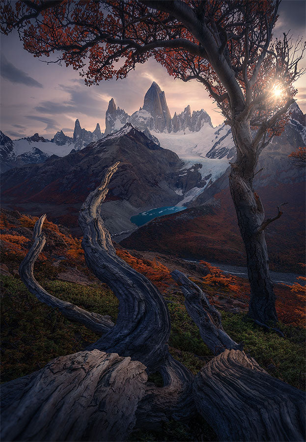 You will be picked up from either Calafate Airport or from your accommodation in case you have arrived prior. After saying hi to the group, it is time to drive in around 3 hours to the small town of El Chalten. We will meet up with the porters and guide - who will assist us during the first 5 days of the tour. All non-essential gear can be left in our apartment. We will have an apartment available at all times - in case of terrible weather. But, we just prepare for the worst and aim for the best, so time to get moving into the mountains! The first part of the hike is going uphill. We will arrive after1 hour of hiking at our base-camp. Our basemen is situated with a view over a lake, and Monte Fitz Roy in the distance. We will shoot sunset from the lake and from a waterfall nearby. During the night we will shoot the milky way with Monte Fitz Roy in the background. Of course, this is optional.