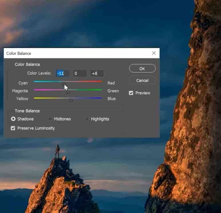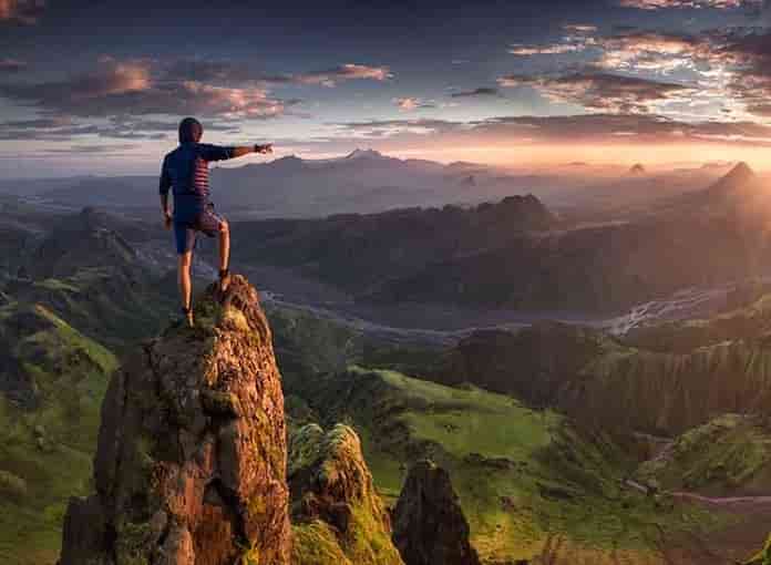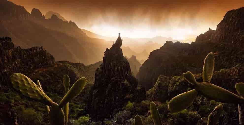 The RAW of this photo has a lot of potential, let me explain why. The foreground works as a framing and offers a semi cave-like view. It also offers some incredible color contrast between the cool stones and the warm background. The person offers a sense of scale and adds more depth to this image and in the background you have many mountain layers. This potential will only be used with the right Photoshop editing techniques. In this case, the contrast plays a huge part in this landscape image success. These contrast editing techniques turn a nice photo into something incredible - and I want to share these techniques with other landscape photographers.
