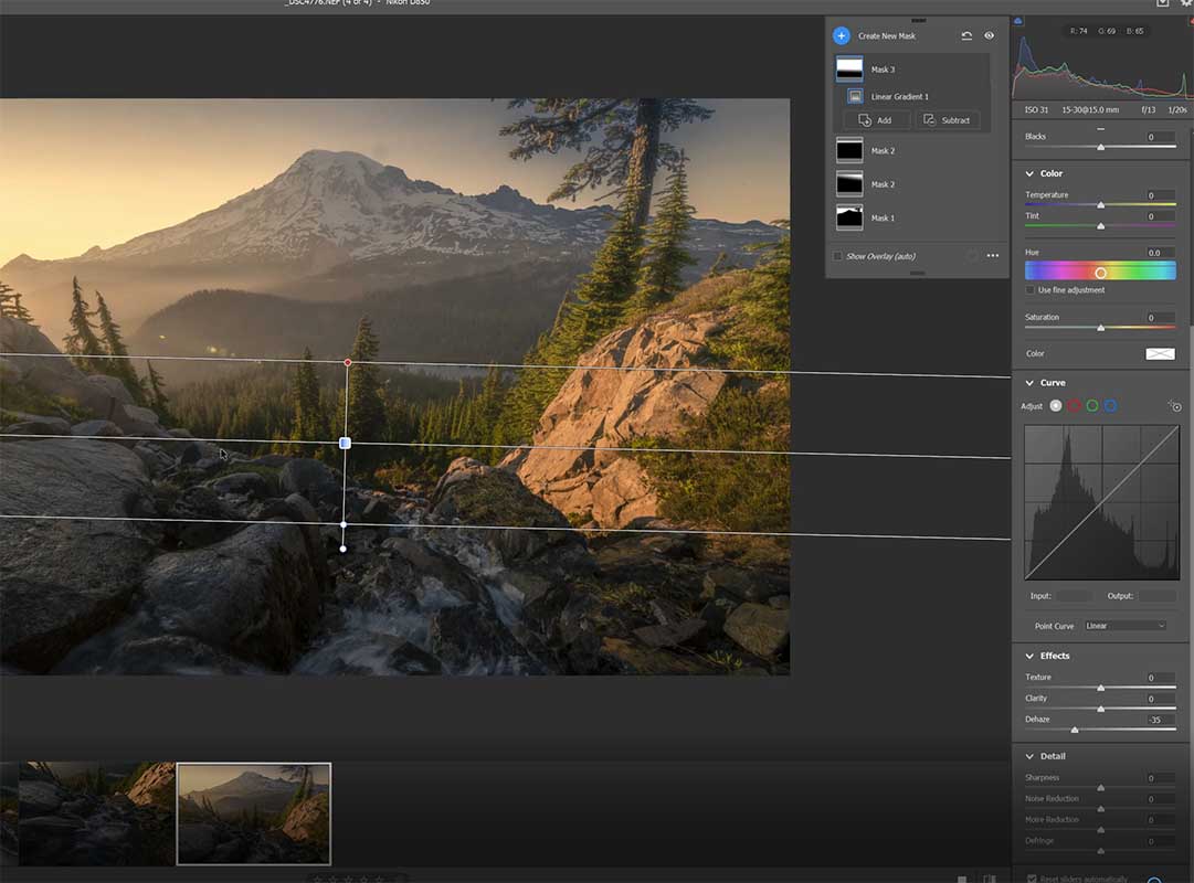 When you add haze, the mood of the image and the depth increases. However, you will also lose contrast and the cooler color tones in the shadows. The effect of the haze will however benefit the most when you simply combine the right versions of each edit. As you can see in the before and after - the after image has a lot of realistic looking haze. This has all been added with this NEW technique!