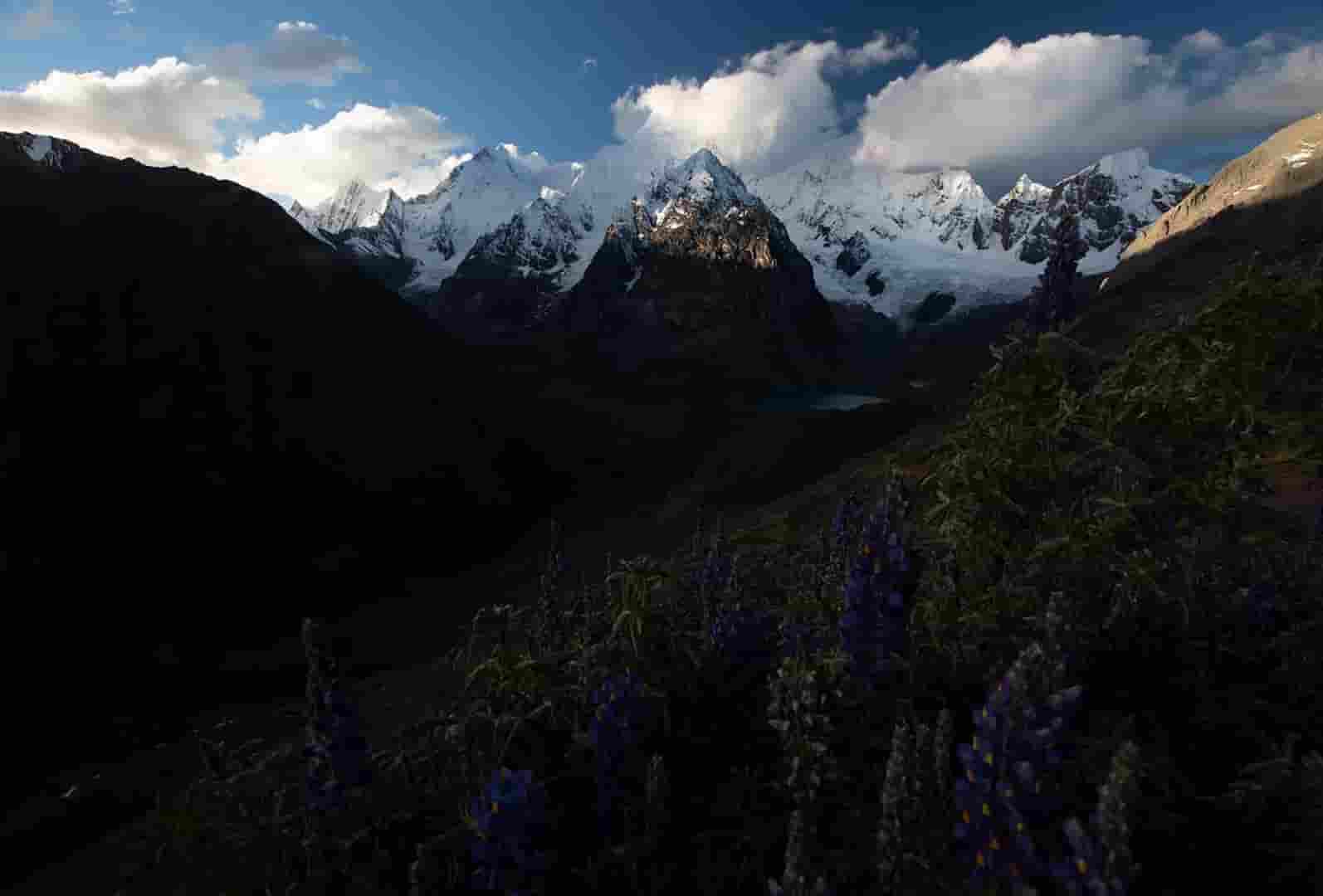 The absolute highlight during my exploration of the Andes, was this high mountain viewpoint towards Siula Grande. There were numerous different colored flowers I used as foreground, such as these lupine flowers. As I rarely use a tripod when on location, I had to do manual focus stacking. When I had to choose a from start to finish tutorial from this location, I choose this one because of the big variety of color editing techniques. Besides the manual focus stacking technique, I do different color light techniques. Such as color light from the side, sun glow, color separation, light on the pool, reflecting glacier, river editing, and more. I also worked on the details of the snow capped mountains with my snow contrast technique. The colors itself have been edited with the HSL-menu, Split Toning, White Balance, Color Balance and Selective Color. I finish this from start to finish tutorial with my Instagram editing technique and preparation workflow.